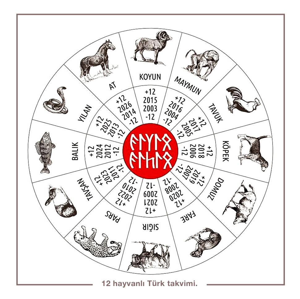 Atın ilk defa gökyüzüyle birlikte ele alınması, 12 hayvanlı takvîme göre birbiri ardınca gelen yılların durağını gösteren bir gök işâreti olarak düşünülmesiyle başlamıştır. Eski Türk yazıtları, 12 hayvan burcunu dolaşan gök hâkimi “Kök Han” fikrini açıkça ifâde eder. At, gök ve yıldız tanrılarının bineği olarak da görülür. Moğolistan’da Airag-Nur (Songino, Zavkhan bölgesi)’da bulunan güneş biçiminde bir diskteki alçak kabartma dört at başının, atın güneş kültüyle olan ilgisini ortaya koyduğu düşünülmüştür (Vandui’deki resim). Diğer yandan Waley ve Petrucci’nin Tun-huang’daki çalışmaları, bu bölgede atın aya âit bir taşıyıcı olduğunu ve güneşin arabasını ise kazların çektiğini göstermiştir. Kaşgarlı’nın bir şiirde, atın alnındaki beyaz akıtmanın ay için olduğunu (tüküz maddesi) söyleyerek şaka yollu böyle atları tavsiye etmesi, atın ayla olan ilgisini akla getirmektedir. Timur dönemine âit bir astroloji kitabı olan Lübâbü’l-iktiyârat’da, gökyüzünde sâbit olmaması nedeniyle dengeyi bozduğu düşünülen ayın, tedirgin ve harekete hazır olmaları makbul atlar söz konusu olduğunda tâlih getireceği yazmaktadır.