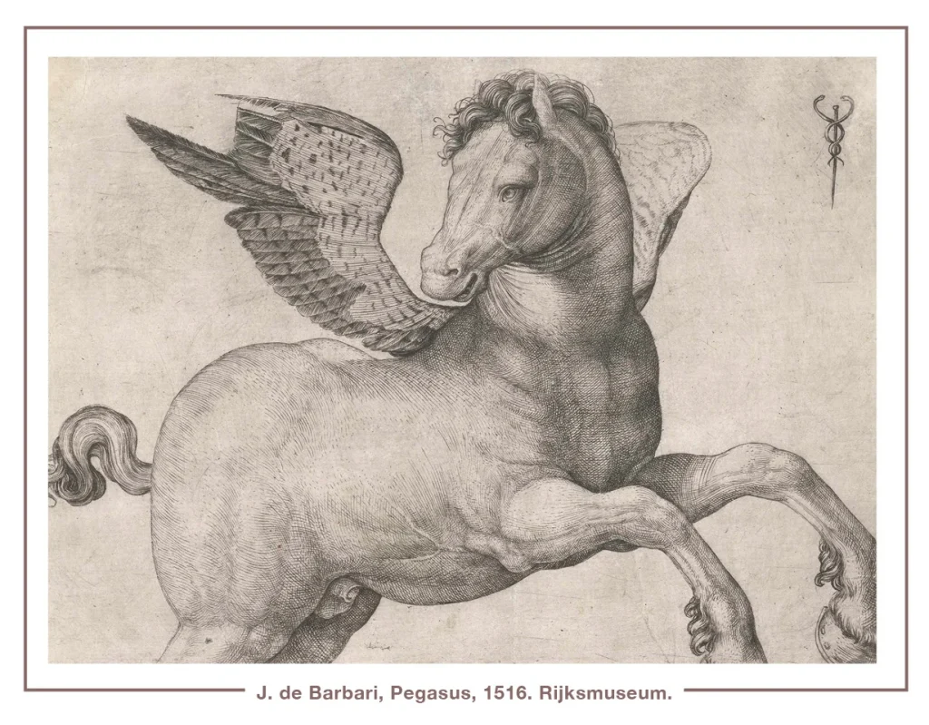 Göksel at miti5 hem Helenistik mitolojide hem de sudan çıkan ejderin uçan bir figür olarak da tasvir edildiği İç Asya’da sudan gelen at efsânesiyle ilişkilidir. Eski alaca at Tcheou-you, yâni güneş atı, hem bir ejder hem de bir kuş idi. Kuça hükümdârının ejder atları, gökyüzünde giden bir arabaya koşulmuştu.
