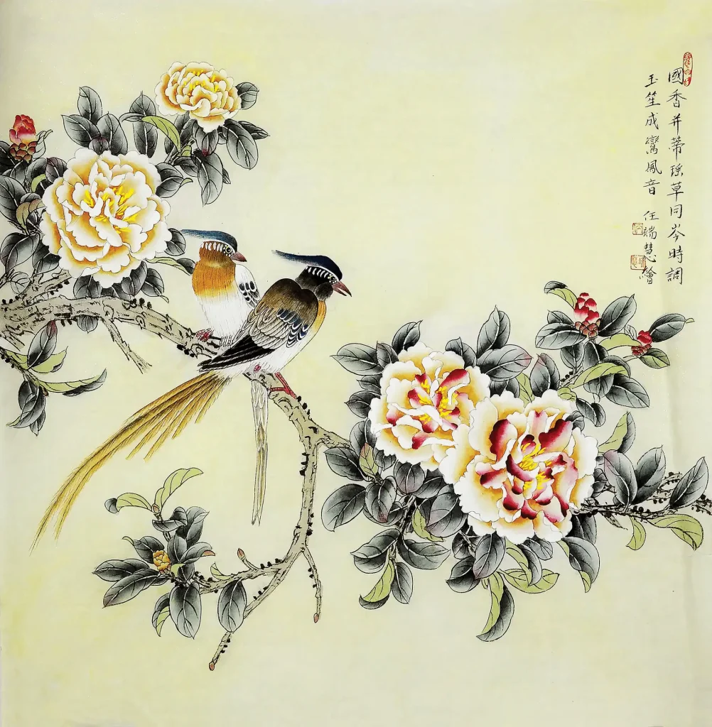 Bitki ressamlığı Çin’de, tıbbî ya da diğer herhangi pratiklerle ilişkisi olmadan müstakil bir sanat dalı olarak VII. ya da VIII. yüzyıllarda başlamıştır. Temelde, bir Budist sanatıyla ilişkilendirilen Çin bitki ressamlığı X. yüzyılda hayli popüler bir hâle gelmiş, Çin kültürünün zirve noktasına ulaştığı varsayılan Tang Hanedanlığı döneminde de (618-907) saygın bir sanat türü olarak kurumsallaşmıştır.2 Bunun yanında kuş ve çiçek resimleri de müstakil ve spesifik bir sanat türü olarak kabul görmüşlerdir. Kuş ve çiçek resimlerinin öncüsünün Xu Xi (ö. 975) olduğu düşüncesi yaygındır. Ressam Xu Xi’nun çiçek, meyve ve kuş ressamlığında tüm Çinli ressamlar arasında en meşhuru olduğu söylenir.3 Çin sanatının geleneksel olarak ayrıldığı iki stilden biri Xieyi, bir diğeri ise Gongbi’dir. Gongbi, Huang Quan’a (903-965) atfedilir. Gongbi, net ve çok ayrıntılı desenlerden oluşan çizgilerle yapılır. Hem dekoratif hem de akademik formları içerir. Xieyi stili ise daha serbest ve kendiliğinden oluşan bir resim türüdür. Her iki stilde de, çizgilerden emin olarak çalışmak gerekir. Resimler çok az renklendirilir.4
