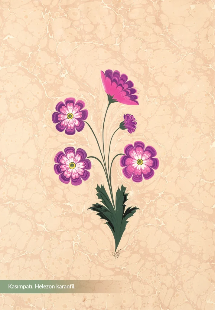 Türk İslâm sanatlarının hepsinde olduğu gibi ebru sanatında da en önemli süsleme unsuru çiçektir. Türk sanatının vazgeçilmez unsurlarından biri olan çiçeğin Osmanlı kültüründe ve Türk insanının gönlünde özel bir yeri vardır. Türk İslâm sanatlarının figürlü bezemeyi sınırlı ölçüler içinde kullandığı hepimizce malum. Sanatlarımızın her birinde çiçek stilizasyonu farklı şekilde ele alınır. Çiçek stilizasyonu, tezhipte, minyatürde ve çinide farklı farklıdır. Çini sanatında tam stilizasyonu en güzel örnekleriyle görebiliyoruz. Peki, Osmanlı kitap süsleme sanatlarında bu olay nasıl bir gelişim göstermiş? XVI. yüzyılın ortalarından başlayarak Osmanlı sanatında giderek artan naturalizm akımı kendini, bitki motiflerinin gerçeğe uygun olarak işlenmesi ile göstermiştir.