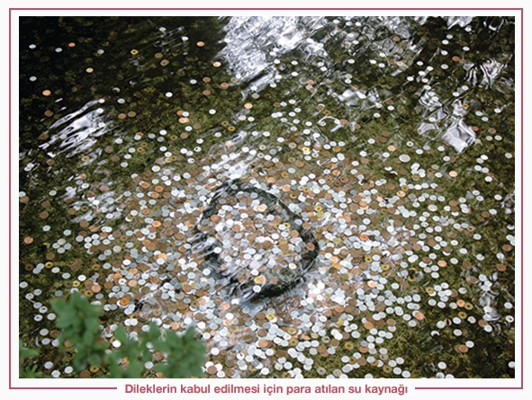Benzer eğilimlere Anadolu’da kutsal kabul edilen bâzı yerlerde de rastlanmaktadır. Bâzı câmilerin şadırvanlarına para atma âdeti bahsettiğimiz tutuma örnek gösterilebilir. İstek ve dileklerin kabul edilmesi için havuzlara ve kuyulara ya da su birikintilerinin olduğu yerlere para atma âdeti hem Anadolu’da hem de başka coğrafyalarda yaygın olarak görülür. Meselâ İtalya’nın Roma şehrinde bulunan Fontana di Trevi (Aşk Çeşmesi) bu yönüyle meşhur olmuştur. Değişik ülkelerden Roma’yı ziyârete gelen insanlar, çeşmeye arkalarını döner ve dilek tuttuktan sonra ellerindeki parayı suya atarlar.Suların tutulan dilekleri yerine getireceği yönündeki inançlar, Türkler İslâmiyeti kabul ettikten sonra da devam etmiştir. Dilek için gidilen kutsal sulara veya göllere Anadolu’da da rastlamak mümkündür. Meselâ Urfa’da Aynü’z-Zelîha, Erzurum’da Ilıca Söğütlü Köy Balıklı Gölleri bunlardan bâzılarıdır. Halk arasında yaygın olan inanca göre, Urfa’daki Aynü’z-Zelîha çeşmesinin hikâyesi Hz. İbrahim’e kadar dayanır. Erzurum’daki Söğütlü Köy Balıklı Gölü, Tanrı’nın rızâsını arayan mâsum iki kişinin efsânesine dayanmaktadır. Hatta halk arasında, ermiş kültü ile de bağlantı kurulan Balıklı Göl’deki balıkların, zaman zaman savaşlara katılan evliyâ olduğuna inanılmaktadır. Balıklı Göl’ün metafizik âlemle doğrudan irtibâtı olduğuna; başını suya sokup suyun içinde gözlerini açan kişinin mânevî âlemleri müşâhede edebileceğine inanılır.