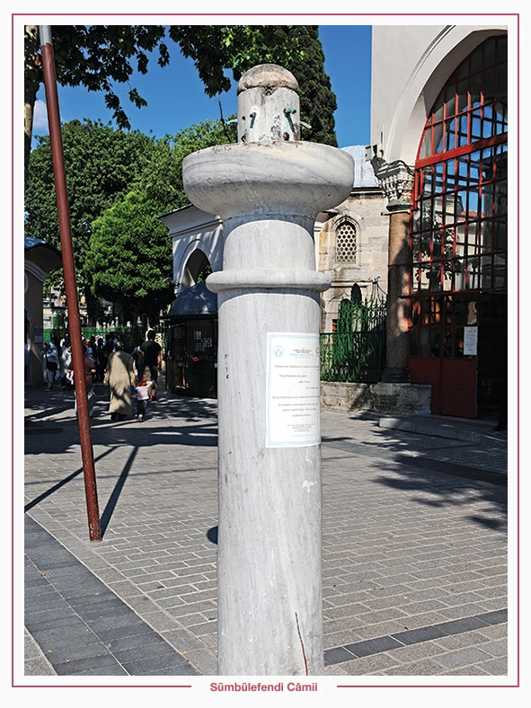 Sümbülefendi Câmii’nin avlusunda yer alan kuş sebîli, tepesine yerleştirilmiş 1,5 m yüksekliğindeki sütun ile mîmârî ve ergonomik açıdan en güzel örnekler arasındadır. Eyüpsultan’daki Süleyman Subaşı Mescidi, diğer adı ile Münzevî Câmii’nin caddeye bakan bahçe duvarı üzerindeki –bugün ne yazık ki suyu akmayan- çeşmede ilginç ve nâdîde bir kuş sebîline rastlarız.