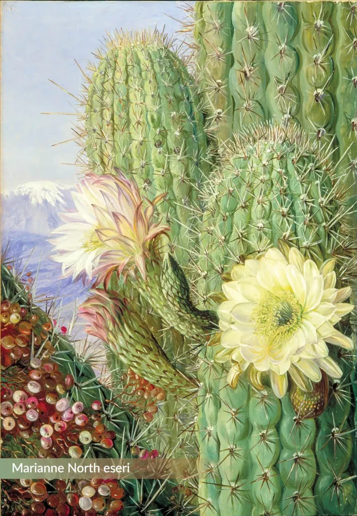 Bitki ressamı olarak çalışmaya başladığım zamanlar üzerinde çalıştığım ilk doğabilimci Marianne North’tu. Şans eseri biyografisinin ve eserlerinin olduğu bir internet sitesi bulmuş, Şili’de yaşadığına ve 1884’te bütün o güzel bitkilerin ve çiçeklerin resimlerini yaptığına inanamamıştım. Birçok resmine, araştırmaya başlayana kadar rastlamamıştım.