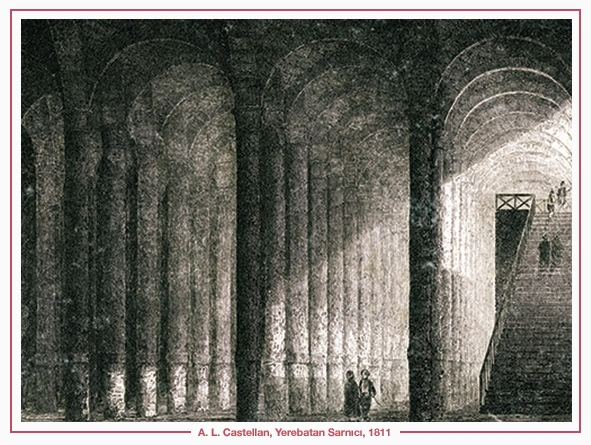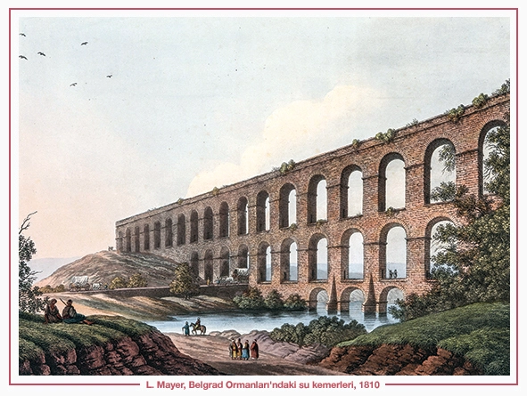 Trakya’nın kuzey kısmında, yâni Istıranca dağlarının çeşitli noktalarında su kaynakları var. O suları topluyorlar ve su kemerleri ile İstanbul’a getirtiyorlar. Bu su kemerlerinden birçoğu hâlâ duruyor. Üzerinde haç olduğu için Hıristiyanlığın ilk dönemlerine âit olduğu tespit ediliyor. Yâni bunlar Osmanlı su tesislerinin kalıntıları değil, Bizans su yollarının kalıntıları. Fakat Türkler bu yolları pek kullanmamışlar.Yapılan ilk isâleler Roma devrine dayanıyor. Bizans devrinde ise daha çok var olanlar kullanılmıştır.Yerebatan Sarnıcı’nı gezenler bilir, en ucunda devâsâ boyda –bu boy bilhassa Roma devrinde moda olur- Medusa heykeli vardır. Tersine konmuştur, çünkü devşirme parçadır. Kısa gelen kısmın altını beslemek üzere oraya konmuştur.