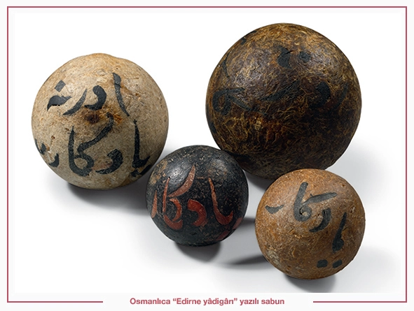 Gelin hamamına dâvet edilecek komşulara Edirne misk sabunu göndererek haber vermek âdettendi. Çeyiz takımlarında bir kutu dolusu Halep yâhut Edirne misk sabunları mutlaka çeyize konurdu. Eskiden Dîvân-ı Hümayûn yemeklerinden sonra vezirlere leğen, ibrik, ulemâya sabunlu destimal (sabunlu su ile ıslatılmış mendil) getirilmesi de âdetti. El yıkarken elinden sabunu kaçırmak yüksek mevkili insanlar arasında ayıp kabul edilirdi. Evliyâ Çelebi, Seyahatnâme’sinde sabuncu esnâfından bahsetmektedir. Evliyâ Çelebi, 200 sabuncu dükkânında 500 çalışanı ve pirlerinin Cemşid olduğunu belirtmektedir. Cemşid’in başlangıçta sabunu zeytin yağından îcat edebilmek için çok uğraştığını, ama muvaffak olamadığını ve buna çok üzülüp ağlarken bir damla göz yaşının sabun kazanı içine düşmesiyle donup taş gibi olduğunu gördüğünü söyler. Göz yaşının tuzlu olduğunu bildiğini, böylece sabun kazanına tuzlu su katılması gerektiğini öğrendiğini ve sabunu îcat ettiğini belirtir.